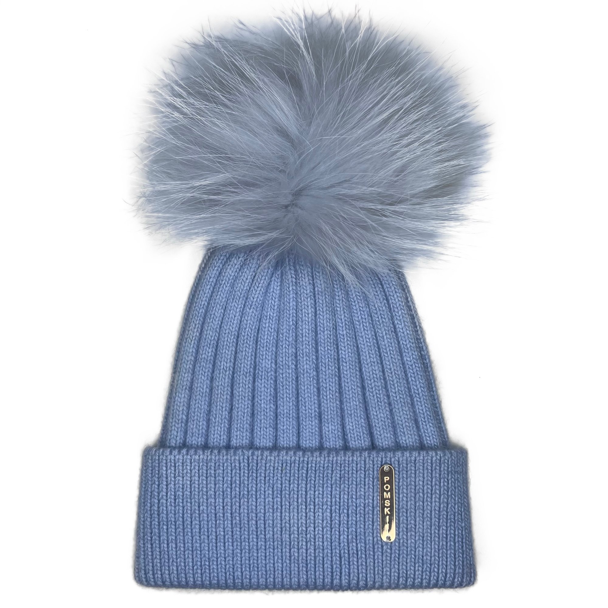 Kids Chunky Knit Angora pom pom bobble hat in Baby Blue.