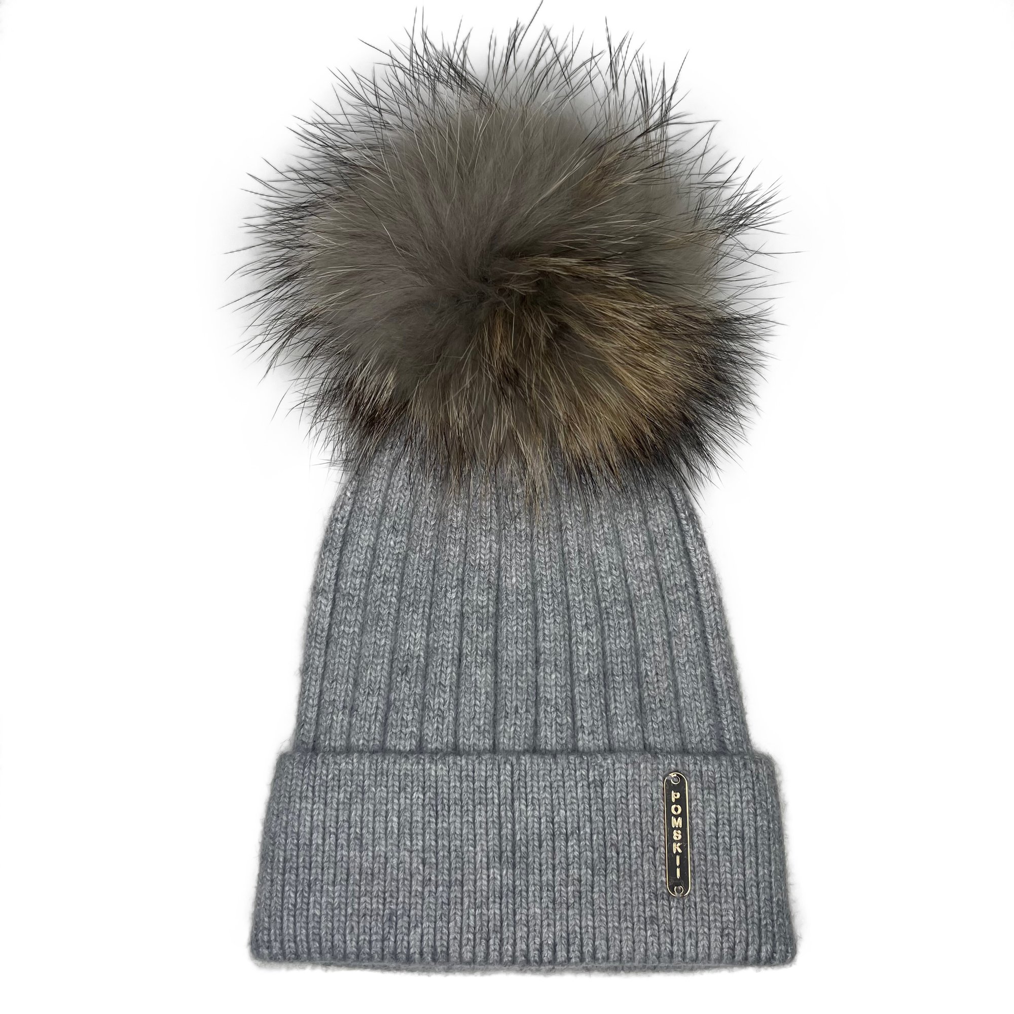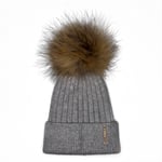 Kids Chunky Knit Angora pom pom bobble hat in Grey Marl.
