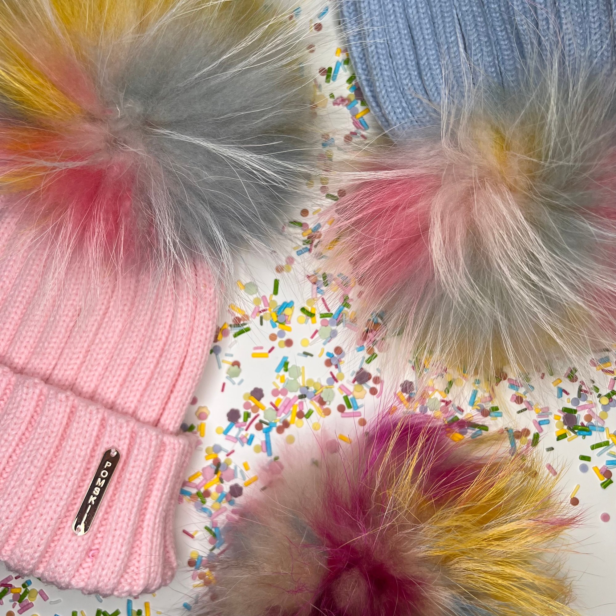 Please note each of our Funfetti Poms are unique and no two are the same. So the Pom you recieve may be a different shade/colour variation to the one in the photo. All our Poms also vary in size.