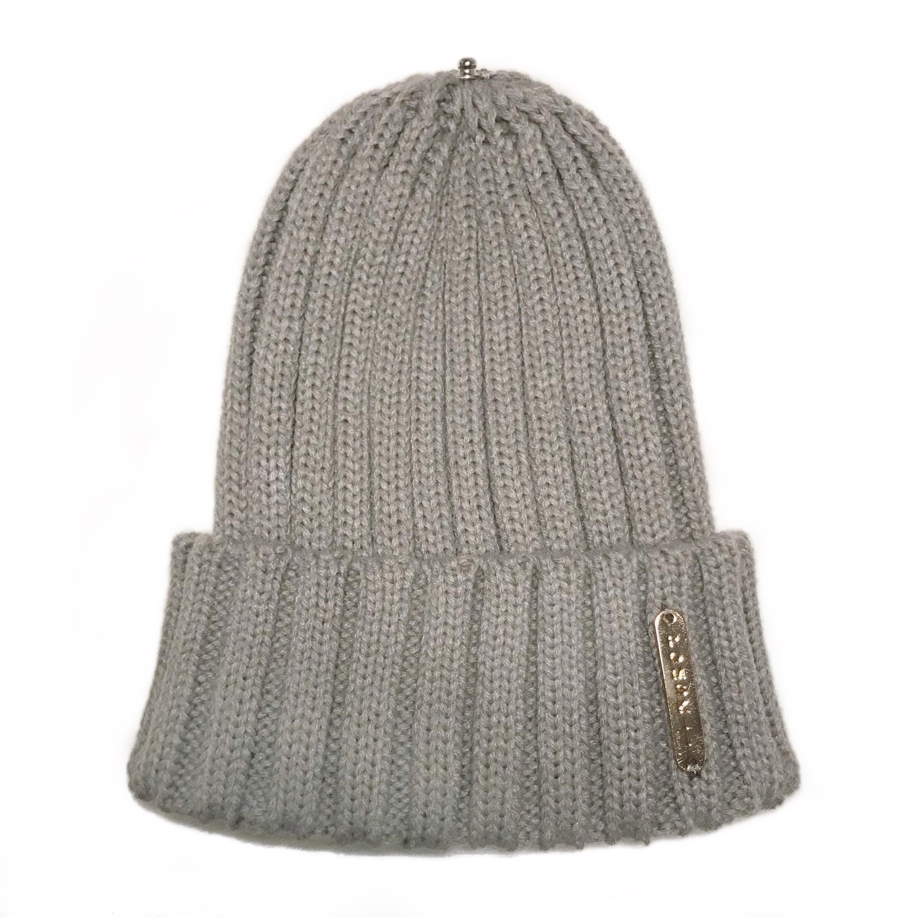 Single Pomskii hat in Pale Grey with gold metal logo.