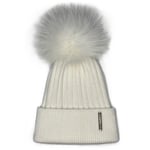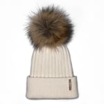 Kids Chunky Knit Angora pom pom bobble hat in Vanilla.